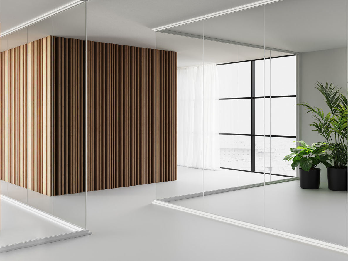 Le pareti divisorie vetrate sono soluzioni moderne ed eleganti per separare gli ambienti senza compromettere la luminosità e la percezione dello spazio. Realizzate con vetro temperato o stratificato, queste pareti offrono una grande trasparenza, favorendo l'illuminazione naturale e creando un ambiente aperto e arioso. Ideali per uffici, showroom e spazi commerciali, le pareti divisorie vetrate combinano estetica, funzionalità e isolamento acustico, permettendo di definire gli spazi in modo elegante e versatile.