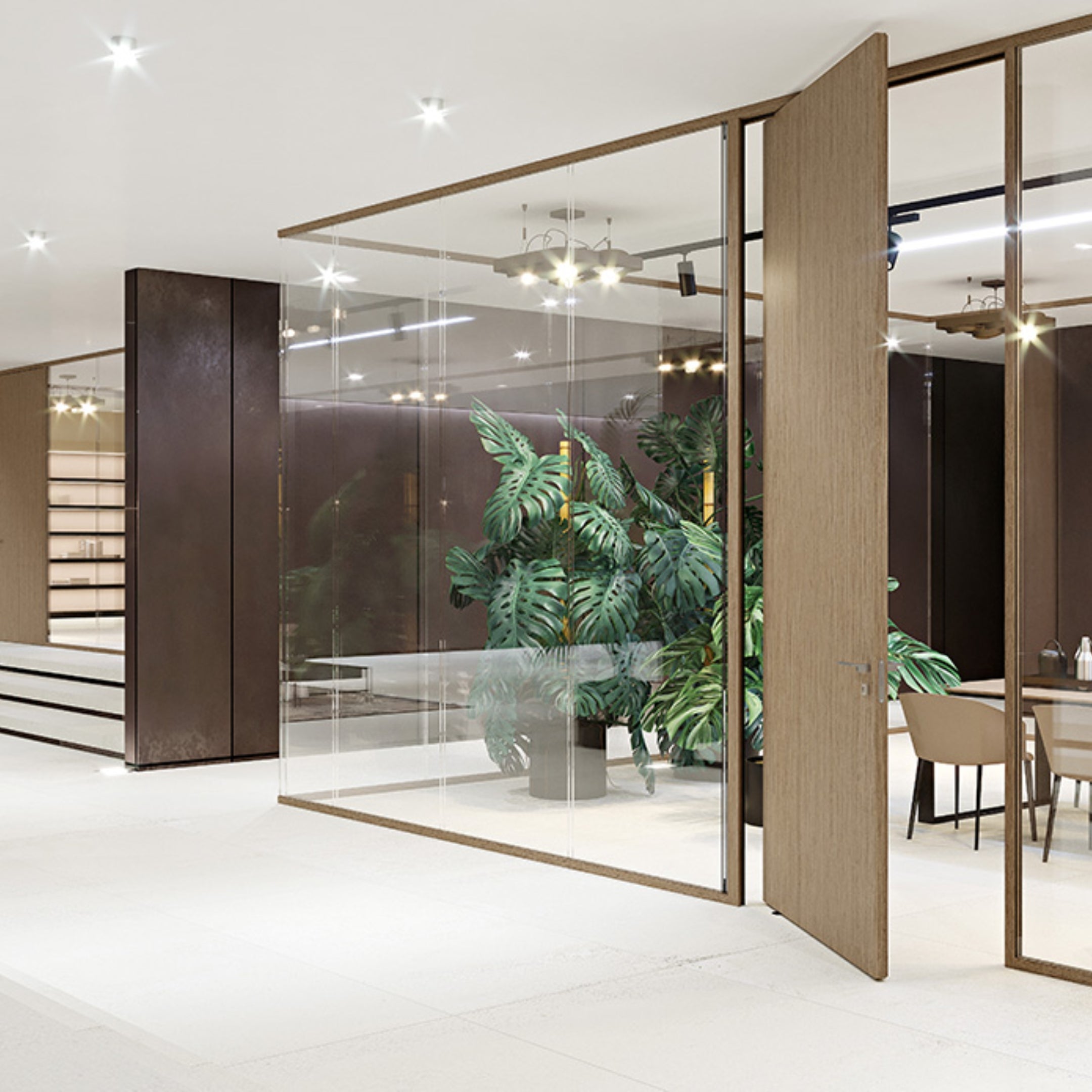Le pareti divisorie vetrate di design sono soluzioni eleganti e innovative per creare spazi separati con stile. Caratterizzate da linee moderne e materiali di alta qualità, queste pareti offrono trasparenza e luminosità, valorizzando l'ambiente senza rinunciare alla privacy. Perfette per uffici, showroom e spazi residenziali di alto livello, combinano estetica e funzionalità, garantendo un'ottima resa visiva e un isolamento acustico ottimale. Le pareti divisorie vetrate di design trasformano ogni spazio in un ambiente raffinato e dinamico.