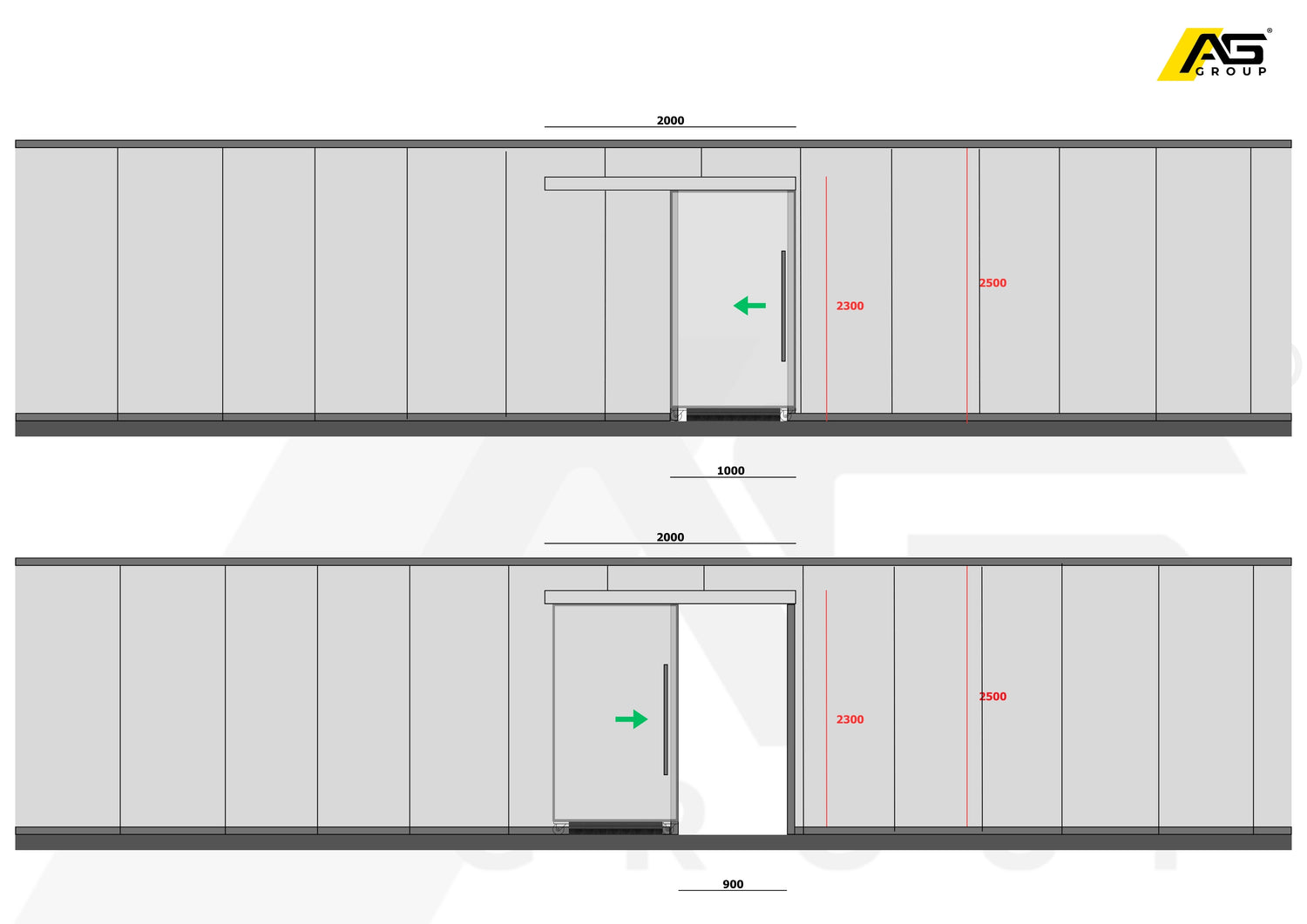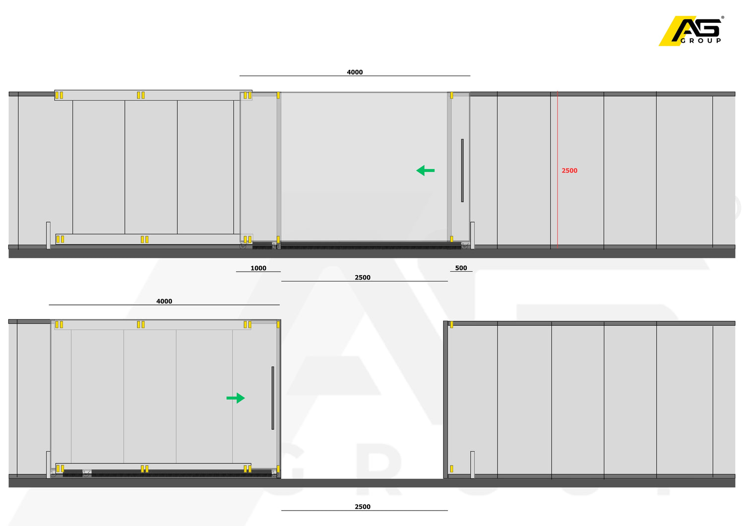 porte scorrevoli su pareti industriali.