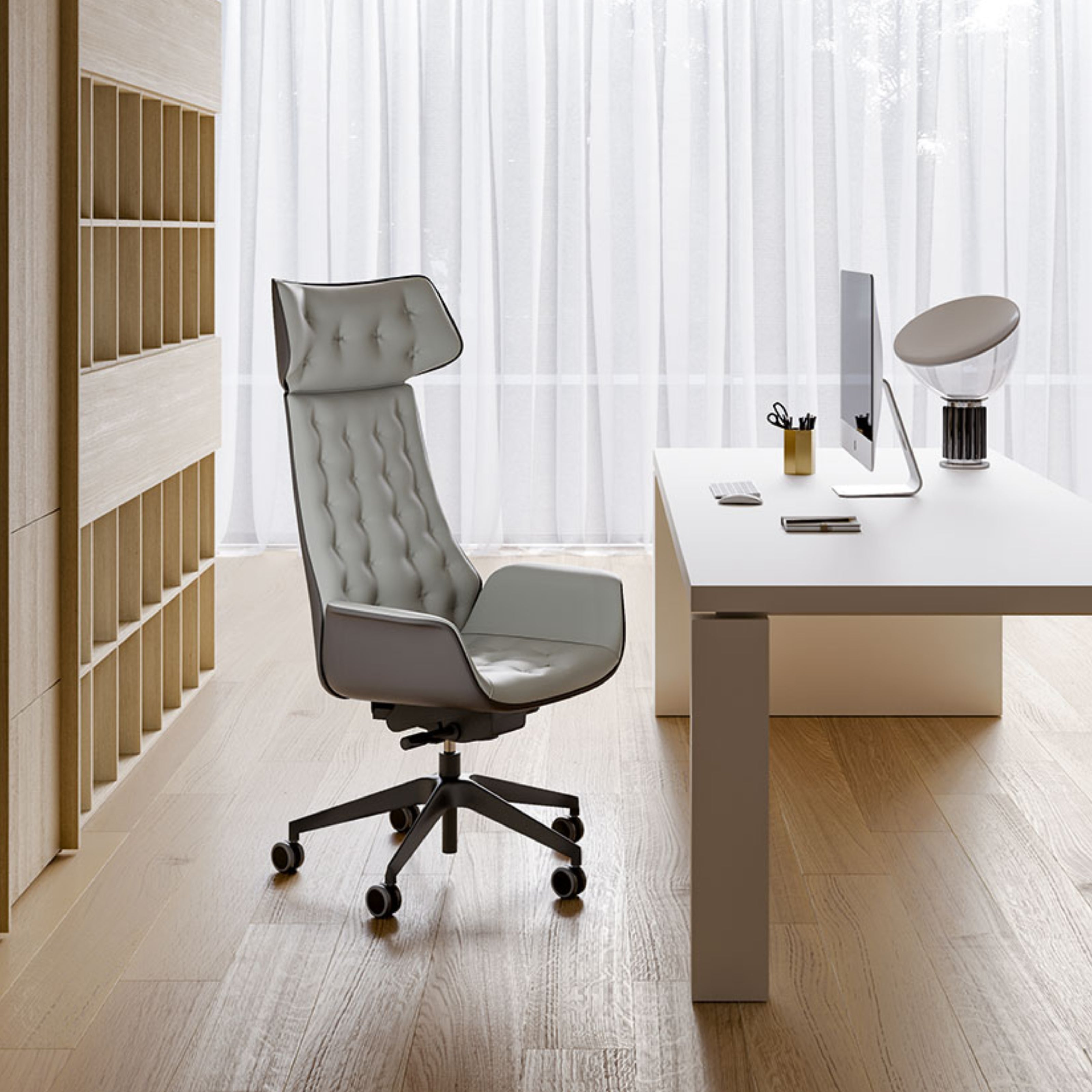 Le poltrone direzionali sono sedute raffinate, progettate per garantire comfort e supporto durante lunghe ore di lavoro. Ideali per uffici e studi professionali, combinano funzionalità e stile. Spesso dotate di regolazioni personalizzabili, come altezza, inclinazione e braccioli, queste poltrone sono pensate per offrire il massimo del benessere alla persona che le utilizza. La loro struttura solida e il design elegante le rendono perfette per ambienti aziendali di alto livello.