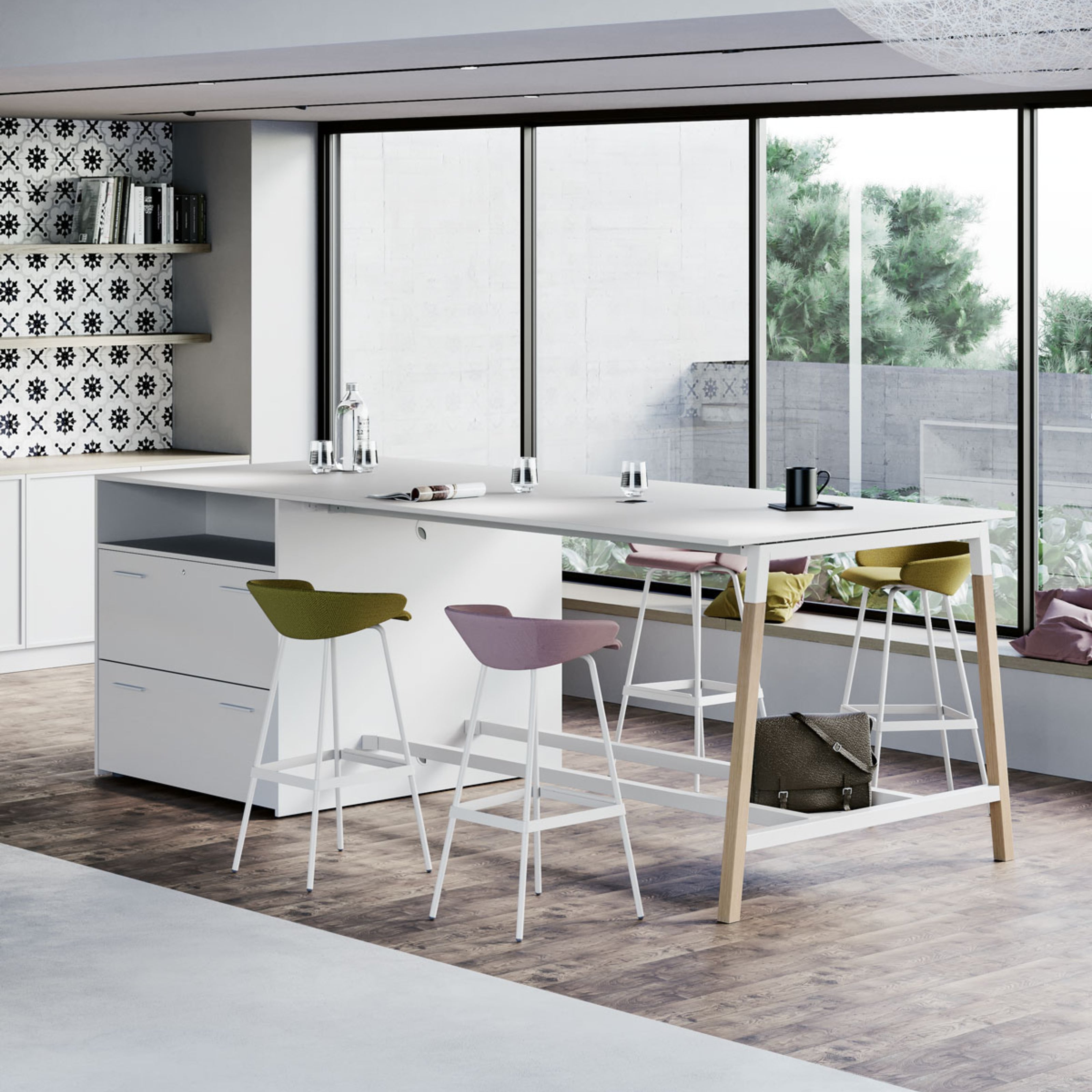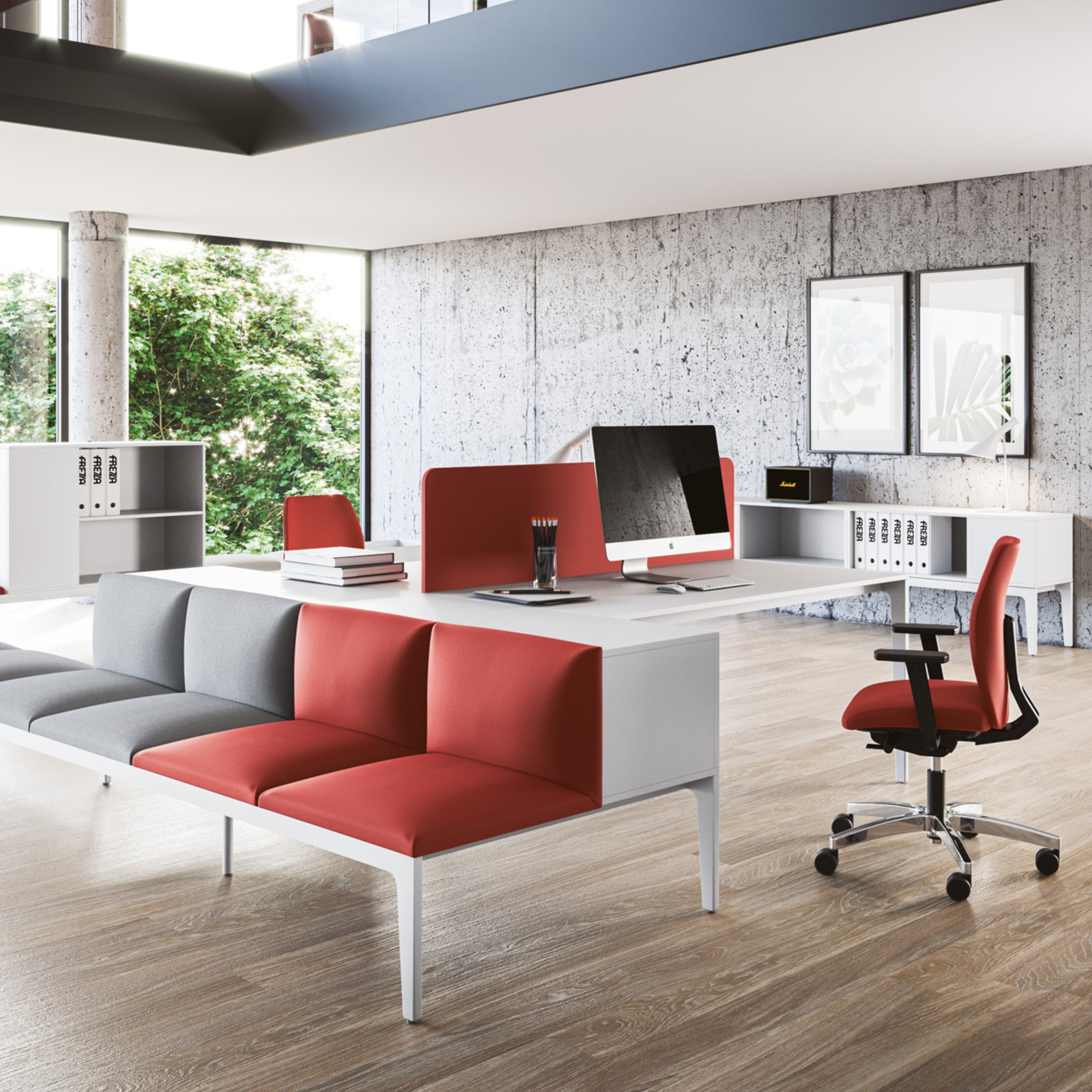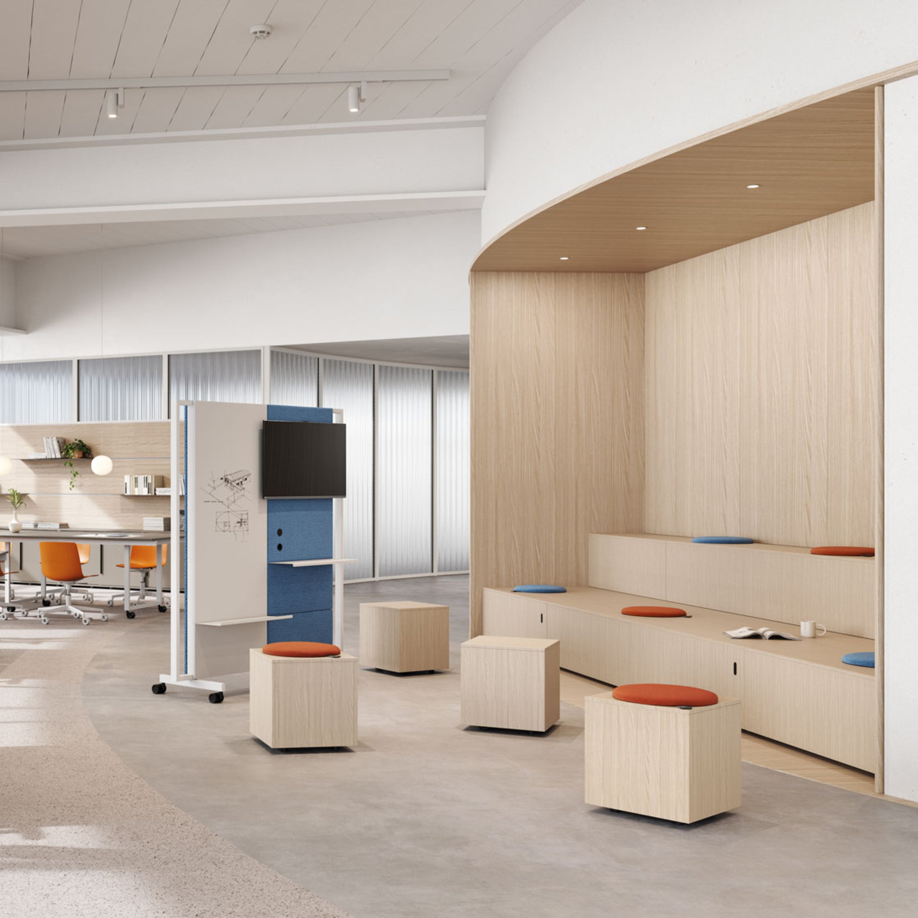 Gli arredi collaborativi sono pensati per favorire il lavoro di gruppo, la condivisione di idee e l'interazione tra colleghi. Modulari, flessibili e spesso mobili, si adattano facilmente a diverse esigenze e configurazioni, creando ambienti dinamici e stimolanti.