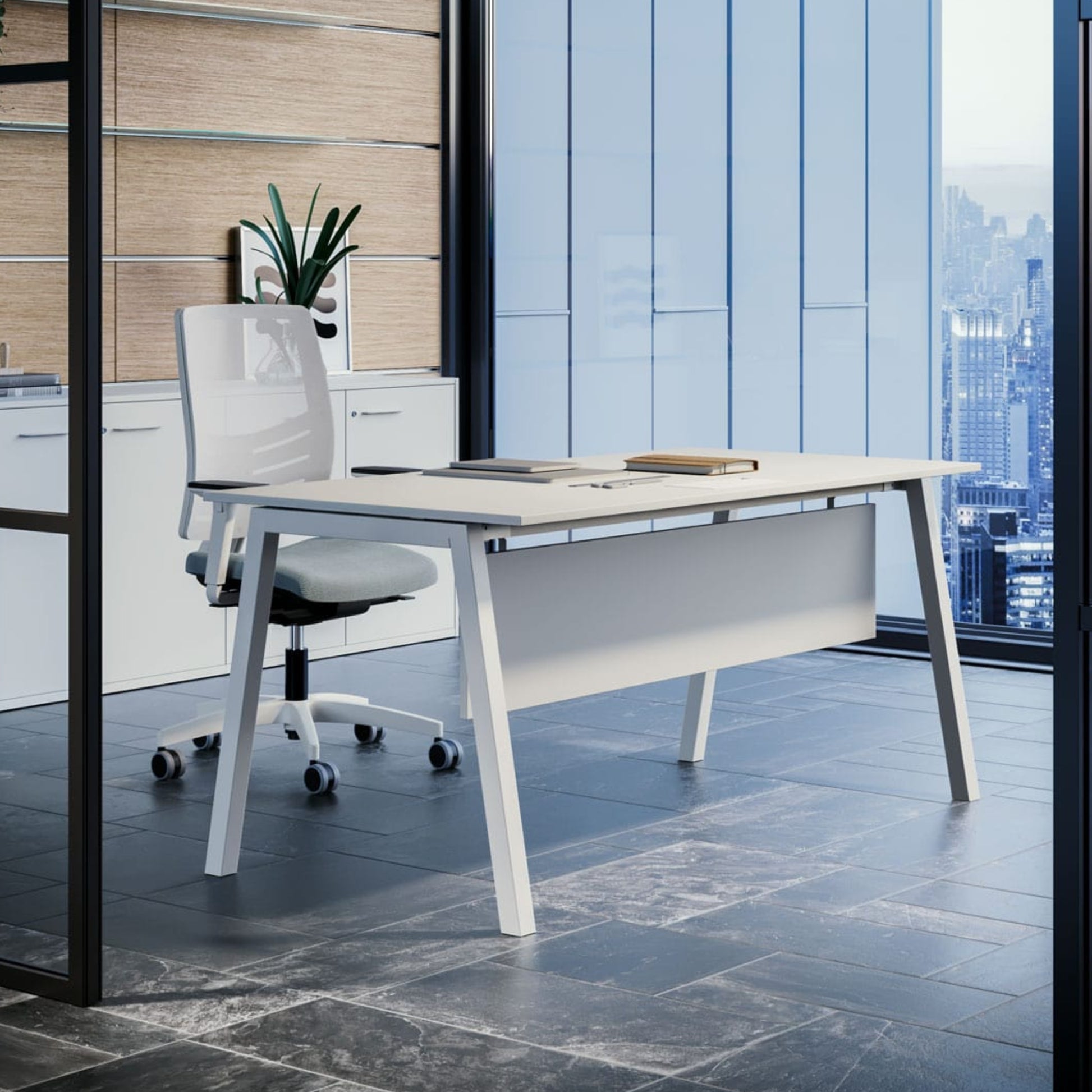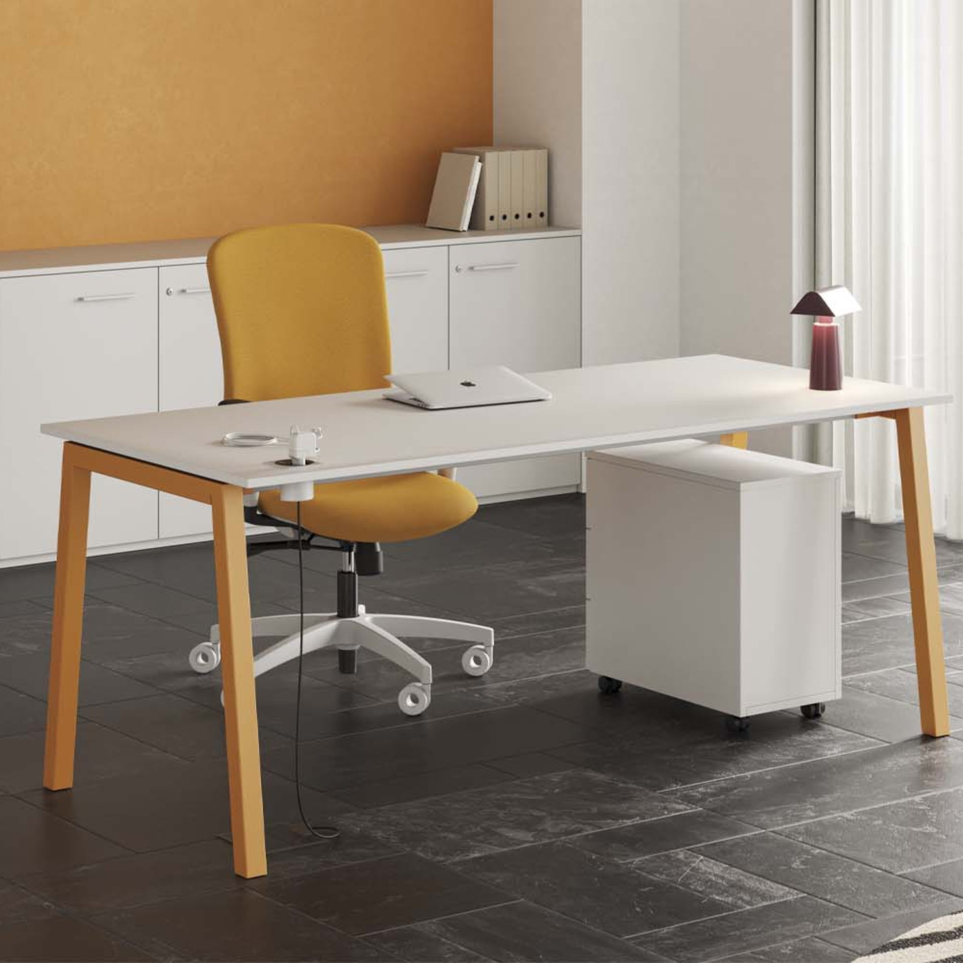 Scrivania operativa con profondità 80 cm, è disponibile in diverse lunghezze 80 – 100 – 120 – 140 – 160 – 180 – 200 cm, e offre la possibilità di scegliere la misura più consona ai propri spazi. Gli allunghi laterali, inoltre, consentono di ampliare la superficie di lavoro.