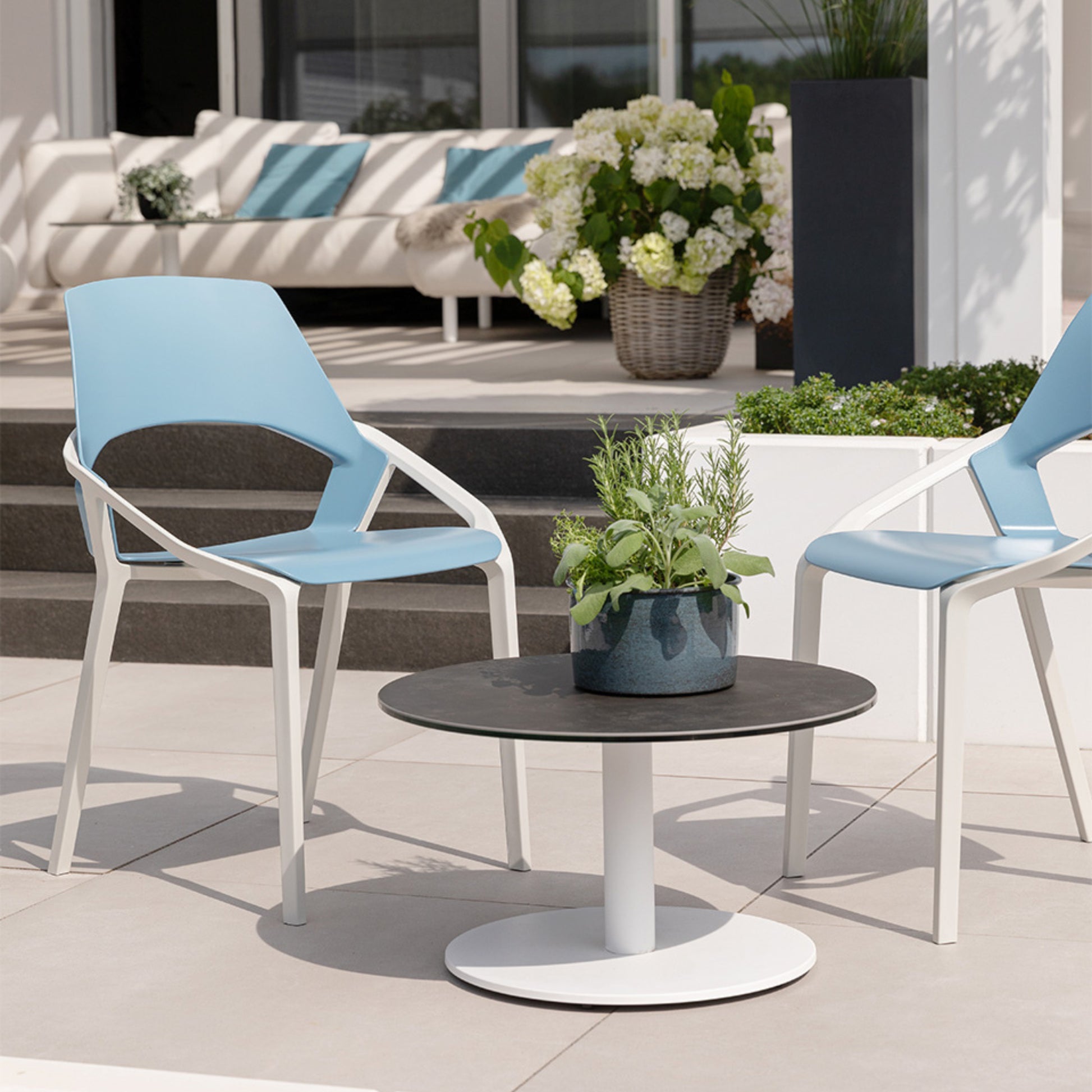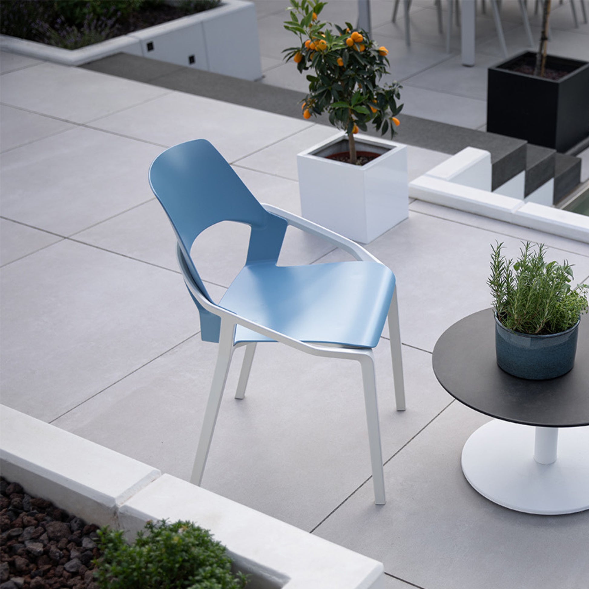 Una sedia semplicemente super pratica. Forme curve e spigolose creano un insieme dinamico. Un look che si adatta perfettamente sia alla cucina o all'ufficio, sia come sedia da giardino o all'area esterna di un bar.